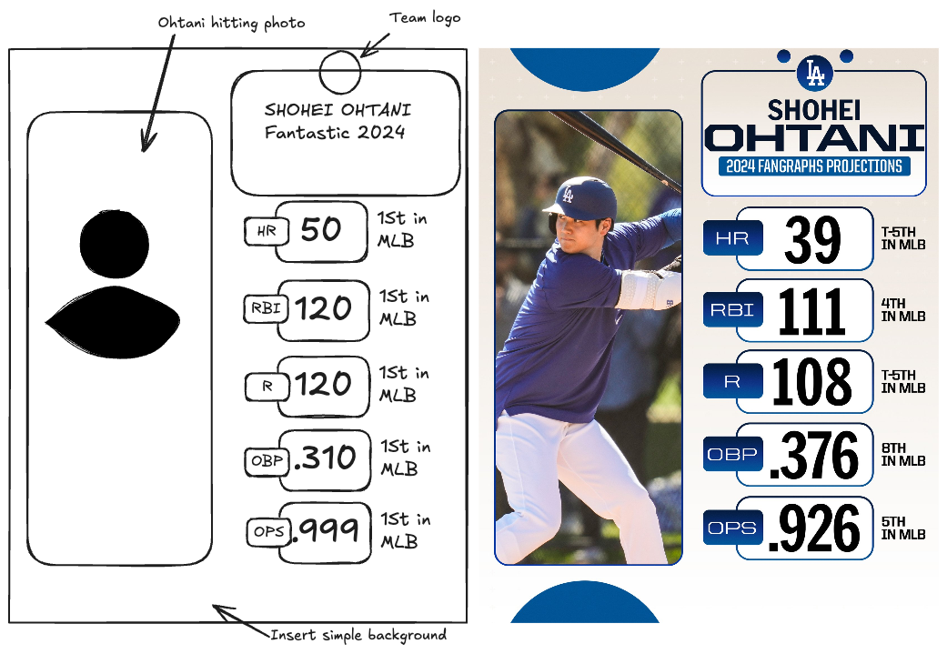 You are encouraged to iterate on this design, using the wireframe as a foundation. You can adjust to fit your chosen player, ensuring the layout is visually appealing while effectively communicating the player’s story and accomplishments.